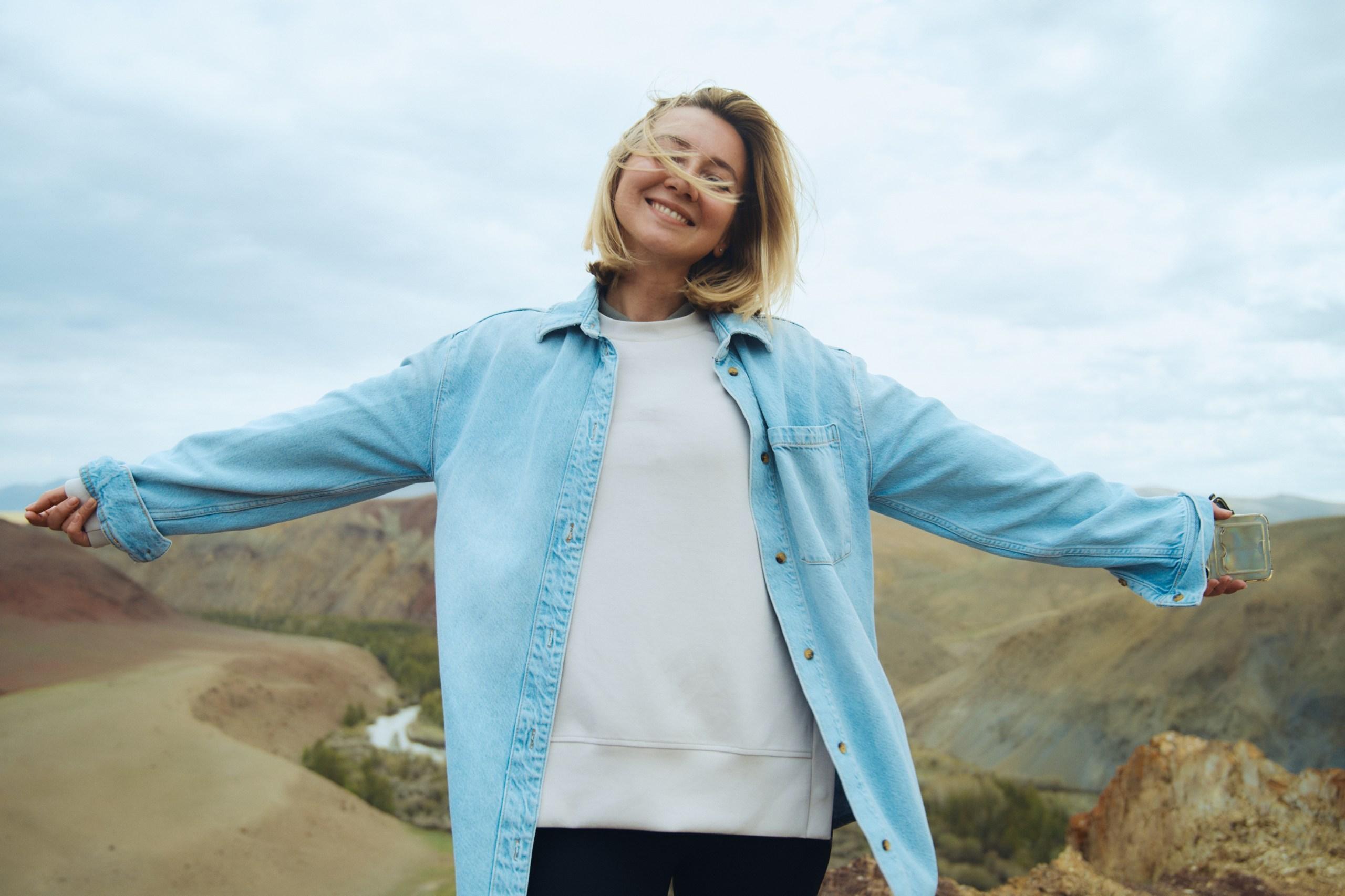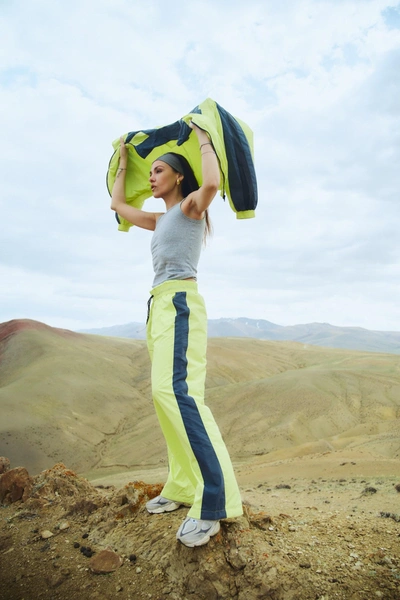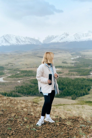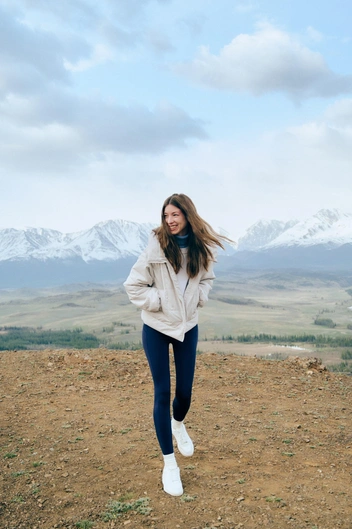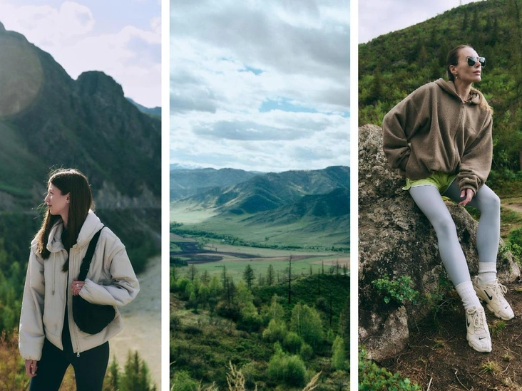 Лучше сделать упор на предметы гардероба в нейтральных природных оттенках (коричневый, хаки и беж) и дополнить их яркими акцентами (например, лавандовым и фуксией). Такие цвета легко комбинируются между собой и прекрасно смотрятся на фоне алтайских пейзажей.