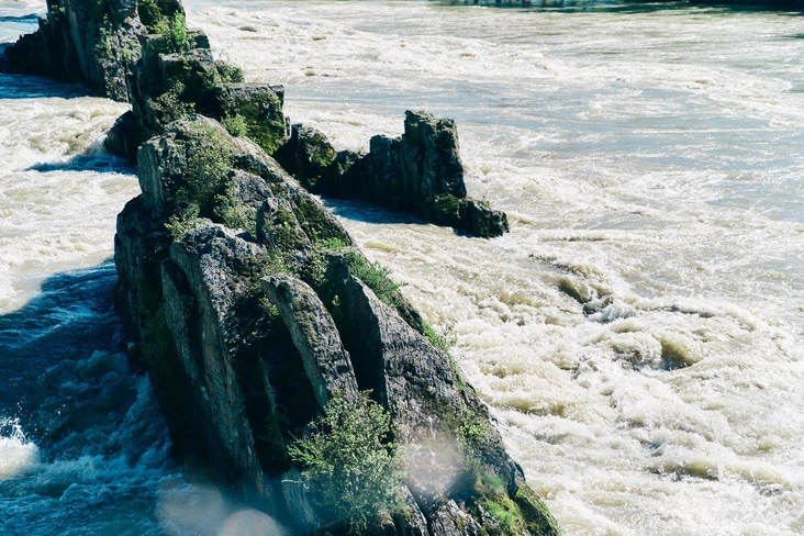 «Зубы дракона» в Чемальском районе — остроконечные скалы прямо посреди Катуни (вам обязательно расскажут легенду о том, как здесь было побеждено суровое чудище, а его останки были навечно похоронены в бурлящей реке).