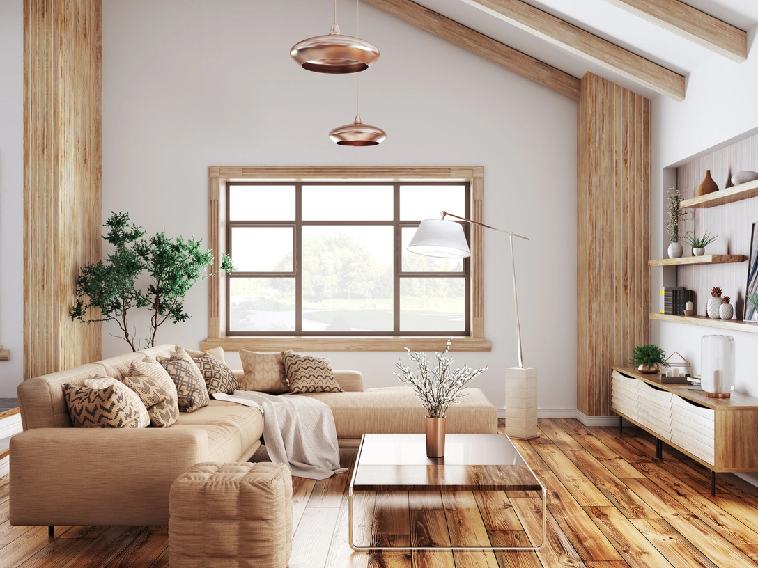 Тренд на экологичность — один из основных в наступающем году. Стоит обратить внимание на мебель из ротанга, шторы из бамбука и посуду из натурального дерева, а также на естественные тона. Кроме того, на балконах квартир можно создать минизоны фитодизайна, а в загородных домах — зимние сады, поскольку живые растения наполняют открытые пространства. Тренд на экологичность и натуральность использует технологические лайфхаки, которые помогают экономить ресурсы, ответственно потреблять. Из основных: энергоэффективное освещение, регуляторы расхода воды, диспоузеры в кухонной зоне, устройства аварийного отключения водоснабжения. В дизайне присутствует много зеленого цвета — он появляется здесь в любом виде, от канарского светлого до насыщенного лайма.