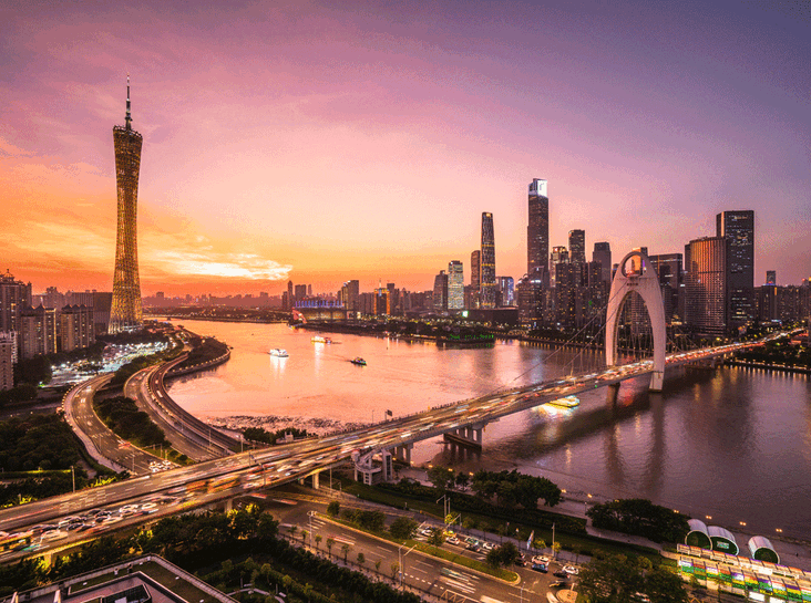 Знакомство с городом лучше всего начинать прогулки по набережной Жемчужной реки неподалеку от площади Хуачэн, которая также известна как Цветочная площадь или «Welcome Hall of the City». Здесь сосредоточены все шедевры ультрасовременной архитектуры Гуанчжоу, которые способны удивить даже самых заядлых путешественников. Главным символом города считается телебашня Canton Tower, построенная к Азиатским Играм 2010 года. Ее высота вместе с антенной составляет целых 610 метров. Как считают сами китайцы, эта монументальная и вместе с тем изящная конструкция отражает многовековую стойкость Гуанчжоу, его бесстрашие перед любыми ударами судьбы и приверженность непрерывному технологическому развитию.