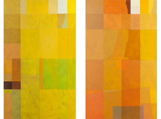 Оба художника уделяют большое внимание цвету. Но делает каждый из них это по-своему. Брюханов использует в своих абстрактных картинах богатую палитру оттенков и фактур, с помощью которых он передает свет (согласно его теории, цвет – это свет, прошедший сквозь призму чувственного восприятия). Георгий Майер же придерживается черно-белой цветовой гаммы, вдохновляясь игрой света и тени на женском теле.