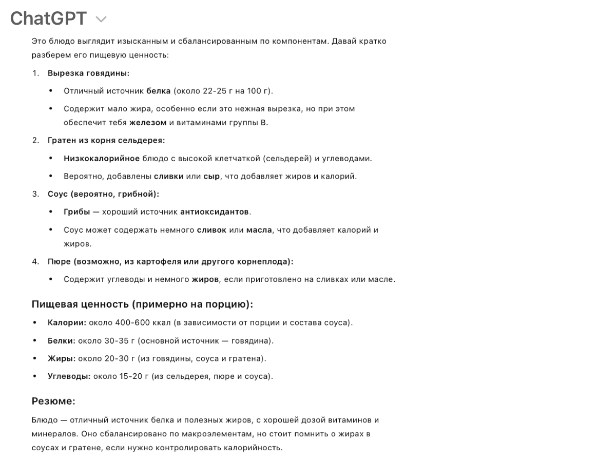 Искусственный интеллект может быть использован в качестве вспомогательного инструмента в вопросах питания, но он не способен заменить комплексный подход специалистов в области нутрициологии или диетологии.