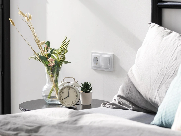 Согласитесь, в отельных номерах просто невозможно найти обилие безделушек, какими бы уместными или дорогими они ни были. Поэтому максимально зрительно освободить пространство в комнате — ваша главная задача, если вы все еще стремитесь увидеть вместо своей спальни люкс пятизвездочного отеля. Выбирайте предметы, которыми вам будет приятно любоваться каждое утро после пробуждения. Иногда, чтобы спальня не выглядела откровенно пустой, бывает достаточно небольшой минималистической вазы с цветами. Или серебряной подставки для украшений на прикроватном столике.