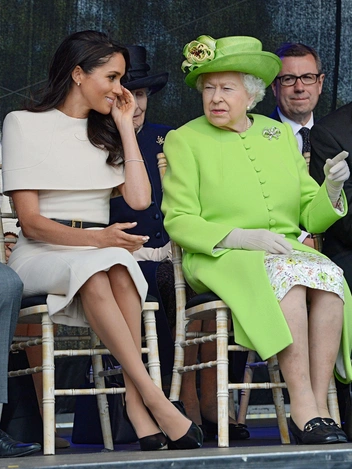 В июне 2018 года, почти сразу после венчания Сассекских, новоиспеченная герцогиня сопровождала Ее Величество на из единственное совместное публичное мероприятие. Пресса была взбудоражена, так как ни одна представительница династии Виндзор не получала такой милости так скоро после свадьбы. Королевский дуэт отправился в Чешир, и дамы провели ночь в королевском поезде. На станции Ранкорн Елизавету и Меган, которые должны были открыть мост Мерси-Гейтвэй между Ранкорном и Уиднесом, приветствовала восхищенная публика.