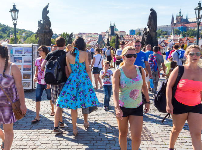 Прага – это рай для туристов, вот почему их здесь очень много. Стоило нам покинуть машину, как нескончаемый живой поток подхватил нас и понес с одной улицы на другую. Просто невозможно было остановиться и подробно рассмотреть витрины сувенирных магазинов, нельзя было задержаться рядом с каким-нибудь прекрасным домом и запечатлеть на фотоаппарат барельефы на нем. И это при том, что фотографировать хотелось многое. Прага славится и гордится своей архитектурой. Многие средневековые здания здесь остались нетронутыми войнами и именно на них приезжают полюбоваться туристы. Наиболее выдающиеся сооружения выполнены в готическом стиле или стиле барокко. Если вы любитель нагромождений барельефов и барочных скульптур, да еще и с позолотой, то вам обязательно надо приехать в Прагу.