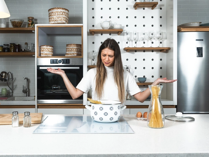 Проблемы с кухонной плитой означают проблемы с женской энергией. Вероятно, к женщине в доме относятся неправильно, без уважения, невнимательно. Считается, что если не изменить свое отношение к хозяйке дома, семью ждет бедность и распад (впрочем, такое развитие событий можно предугадать и без примет).