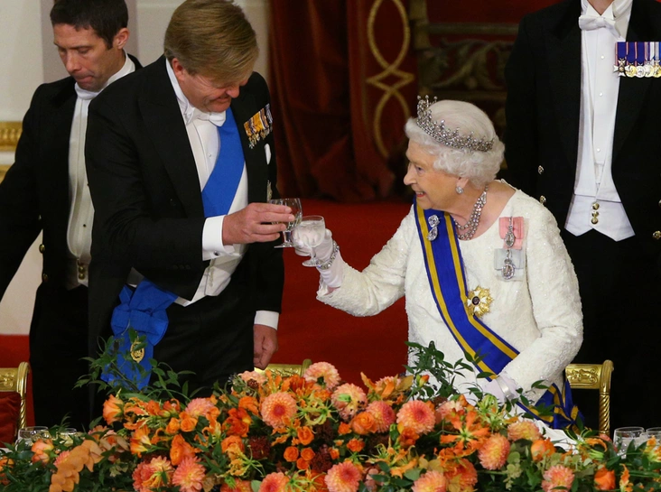 На приеме Виллем-Александр щедро и с фантазией нахваливал Королеву, то называя ее «маяком, на который нужно ориентироваться», то восхищаясь ее способностью (очевидно, и жизнеспособностью тоже) идти в ногу со временем. Он даже признал наличие у Королевы авантюрной жилки, назвав ее «самой бесстрашной девушкой Бонда» и непрозрачно выразив свое восхищение ее появлением в клипе с Дэниелом Крейгом, который был посвящен открытию Олимпийских Игр в Лондоне в 2012 году (читаем и смотрим «Елизавета II стала лучшей девушкой Бонда»).