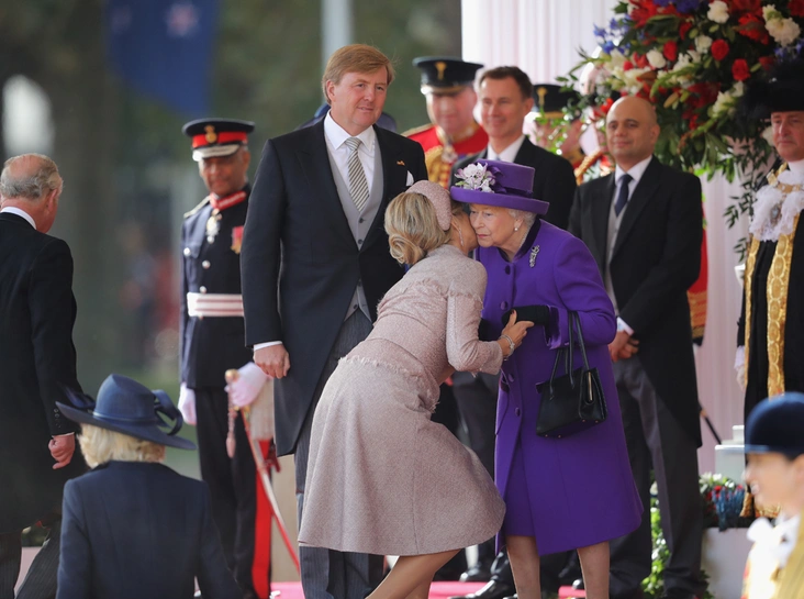 На конно-гвардейском параде гостей приветствовала Елизавета II. Голландцы известны своей открытостью и готовностью к тактильным контактам. Король Нидерландов не стал смущаться, подхватил британскую королеву под обе руки и расцеловал в щеки. Его примеру последовала и супруга. Нельзя не отметить, что при довольно высоком росте голландцев (так, рост Виллема-Александра – 183 см) объятия с миниатюрной британской королевой смотрелись очень комично. Кстати, король сопровождал Елизавету II в Букингемский дворец в карете ─ той самой, в которой хотел прокатиться Дональд Трамп, но ему в этом было тактично отказано (также будет интересно «Чего не сделал Трамп при встрече с королевой (и был ли должен)»).