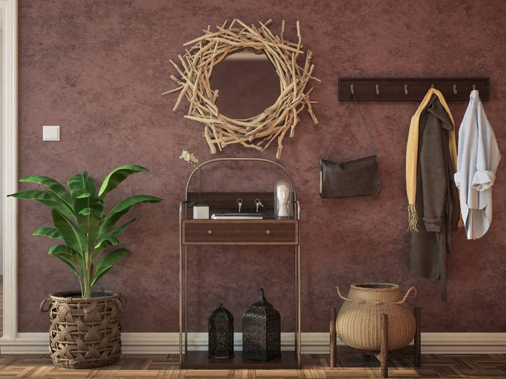 Всем, кто не любит захламленность пространства и придерживается минимализма, предлагаем повесить на стене специальные вешалки в виде винтажных крючков, оригинальных разноцветных или выдержанных в единой цветовой гамме балок. Или, может быть, вы захотите добавить креатива и украсить стену вешалкой в виде листьев, ствола дерева, копья или подковы.