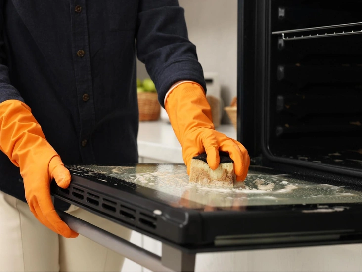 Без этого не обойтись, если вы хотите видеть в стекле духовки свое отражение и чувствовать изнутри приятный свежий запах. Для начала наденьте перчатки и распылите чистящее средство, прежде чем оставить его на некоторое время: так разъест больше грязи, которую потом не придется долго и изнурительно тереть собственными руками. Затем протрите тряпкой дно, стенки и внутреннюю дверцу, постоянно вспенивая моющее средство. Далее воспользуйтесь влажной тряпкой, уже не смоченной дополнительными средствами.