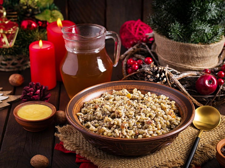 Это достаточно простое блюдо, которое умела готовить каждая хозяйка на Руси. Обычно его основой становятся зерна пшеницы (при желании можно заменить на рис, ячмень или пшено), к которым добавляются ингредиенты с символическим значением. Мак — к достатку, мед — к сладкой и радостной семейной жизни, изюм — к любви, курага — к красоте и страсти, а орехи — к мудрости. Делимся классическим рецептом кутьи, который можно корректировать согласно собственным предпочтениям.
