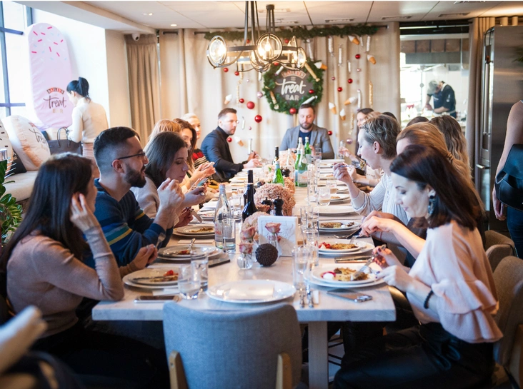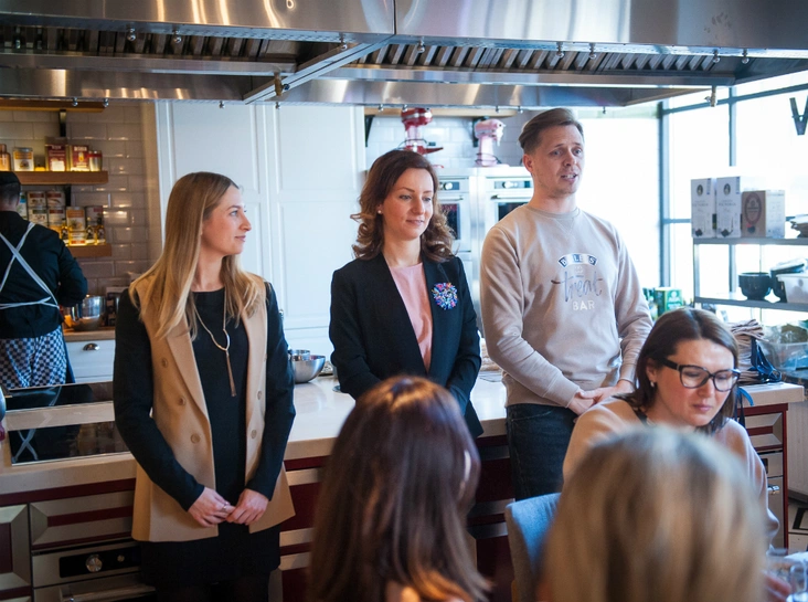 10 февраля в кулинарной школе Novikov School в ТЦ Гименей прошел десертный Treat Bar бранч. На мероприятии собрались 24 блогера, а приветственные слова говорили директор по рекламе Marie Claire Алена Ткач, бренд-амбассадор Diageo Евгений Нерубенко и директор по маркетингу и партнёрским проектам Novikov School Елена Тышковская.