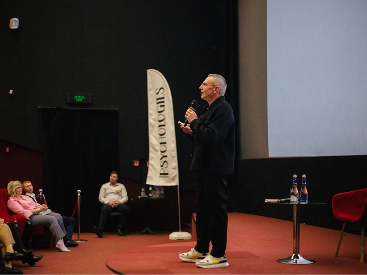 Далее во всех трех городах выступил Владимир Дашевский — кандидат психологических наук, психотерапевт, системный семейный терапевт. Он заметил, что эгоизм не всегда воспринимается как положительная черта личности, однако он может быть полезен для человека. Ведь, по его словам, подобное качество встречается и у животных — им оно нередко помогает выживать, когда речь идет, например, о борьбе за еду.