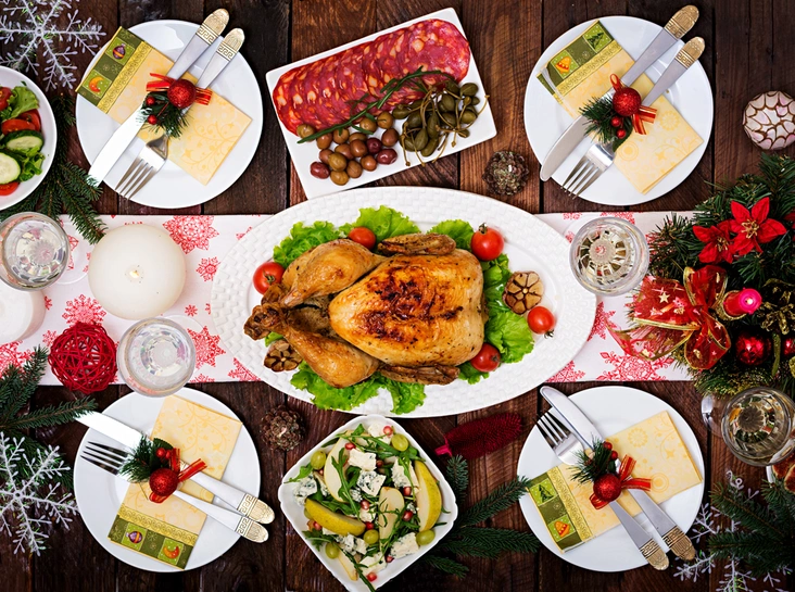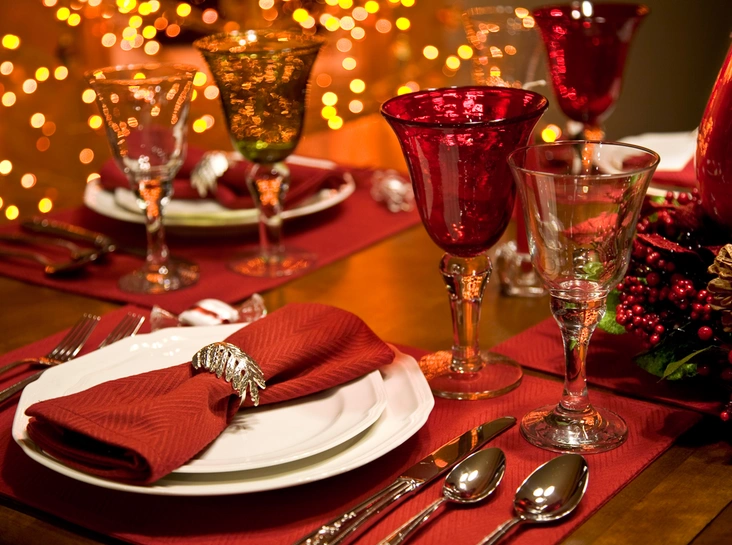 Актуальны красный, оранжевый и золотой. При сервировке стола их можно брать за основу, добавляя фоновые оттенки.