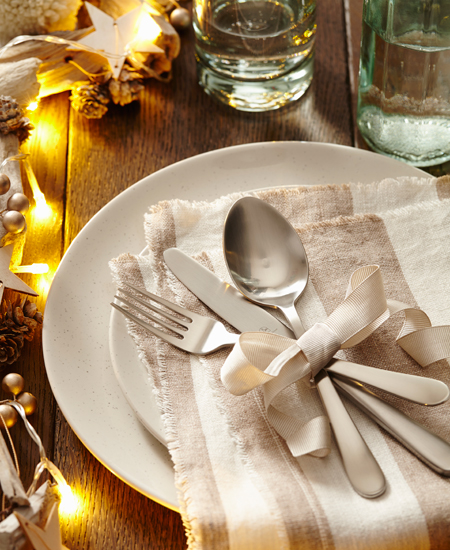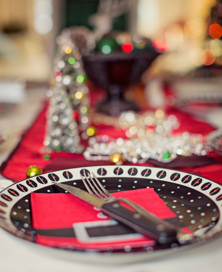 Отличный вариант ─ новый комплект посуды (когда позволить его себе, если не к празднику?). Чтобы покупка была практичной, выбирайте широкие «лаконичные» белые тарелки (25-28 см в диаметре). Лучше, если посуда будет без рисунков, максимум – с гравировкой. Такие тарелки прослужат долго, каждый раз выступая в новом свете, в отличие, например, от тарелок с новогодней росписью, которые большую часть года будут пылиться в шкафу. Не стоит бояться простых решений: под скромные белые тарелки можно устанавливать декоративные подстановочные, а также класть цветные или кружевные салфетки.