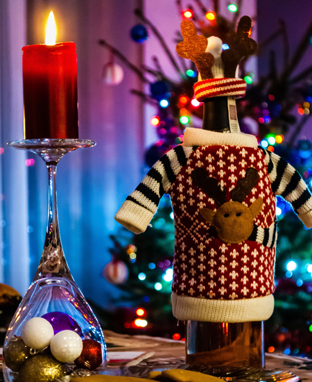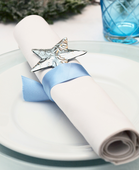 Чем лаконичнее ваша посуда, тем проще ее декорировать под Новый год. Вот несколько простых советов. Свяжите столовые приборы лентой или бечевкой, добавьте еловую веточку, шишку или корицу посередине. Спрысните бокалы с внешней стороны «снегом» из баллончика или блестками для придания праздничности. Украсить можно и основания бокала у ножки – в ход идут все те же ленты. Самый простой вариант – обмакнуть влажные края бокала в сахар (такой декор будет не только красивым, но и съедобным). Наконец, последнее: откажитесь от бумажных салфеток. Текстильные будут не только практичнее, но и станут настоящим украшением стола. Они могут быть в едином стиле и цветовой гамме со скатертью или играть на контрасте.