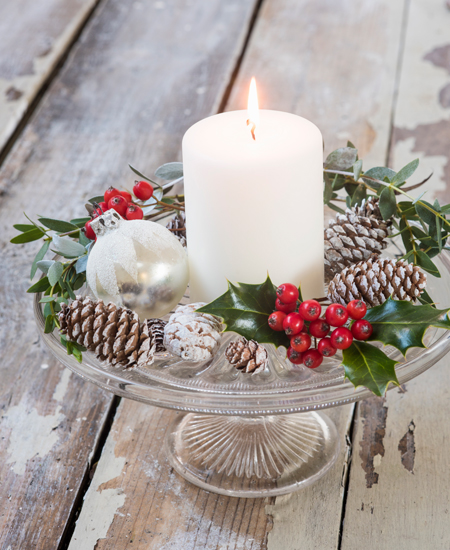 Если у вас широкий стол, вдоль по горизонтали можно застелить текстильную дорожку. Расставьте на ней свечи, композиции из еловых веток и сухоцветов, положите мандарины, хлопок, шишки и другие новогодние атрибуты.