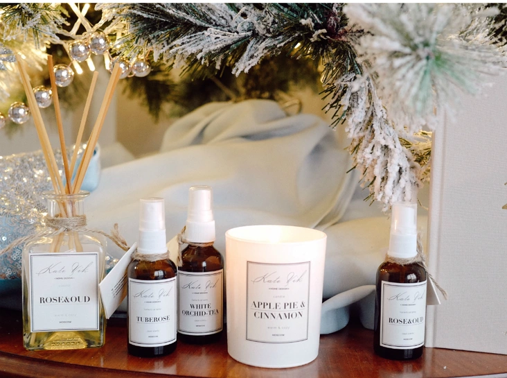 В коллекцию ароматов для дома от KATE VIK вошли: свечи, диффузоры, интерьерные духи для домашнего текстиля и машины. Свечи представлены с разными ароматами, например, свеча «Абрикос, базилик и мандарин» считается кухонной свечей, она помогает избавиться от неприятных ароматов после готовки и пробуждает аппетит во время приема пищи, а «Яблочный пирог с корицей» - новогодняя свеча, её часто покупают в зимний период, ведь она послужит отличным подарком на новый год.