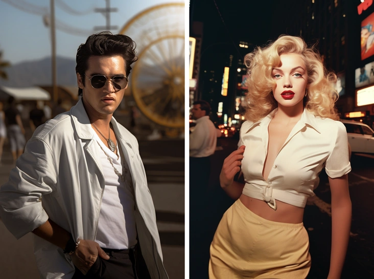 Элвис Пресли — певец-легенда. Если бы он жил в XXI веке, то определенно не пропустил бы самое главное событие музыкальной индустрии — фестиваль Coachella, ежегодно проходящий в одноименной долине близ Лос-Анджелеса. Нейросеть не стала наряжать певца в экстравагантный костюм, а решила отдать предпочтение расслабленному стилю «old money», находящемуся на пике популярности в 2023 году. А вот без массивных и броских украшений на Coachella действительно не обойтись, так что здесь получилось идеальное попадание во все тренды.