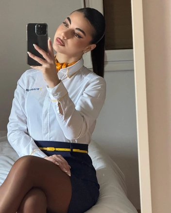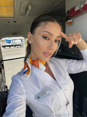 Еще одна турецкая красавица в нашей подборке. Уверены, стюардессы с легкостью могли бы пройти кастинг на главные роли в известных турецких сериалах, веди визуально отличить их от актрис по степени красоты — невозможно. Медин не является блогером, однако охотно делится в аудиторией бьюти-лайфхаками. Ну и, конечно, иногда радует подписчиков и друзей историями из жизни стюардессы.