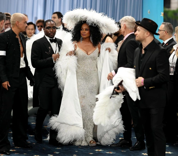 Дайана Росс в этом году претендует на звание обладательницы самого эффектного — пусть и не по дресс-коду — наряда. Роскошное платье, инкрустированное стразами, было дополнено огромным пушистым кейпом, который несли и красиво раскладывали на ступеньках шестеро мужчин. Интересно, что на нем были вышиты имена всех детей и внуков певицы.