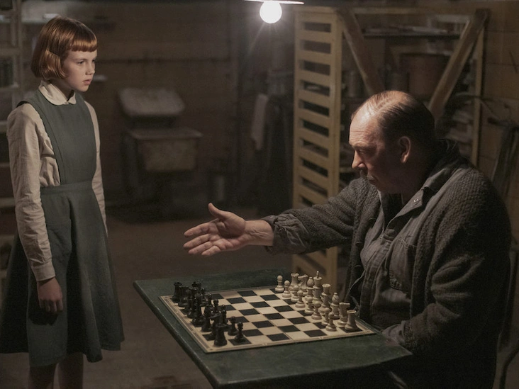 Первым учителем главной героини становится уборщик в детском приюте, который свободное время проводит за шахматной доской. Он играет с самим собой настолько сосредоточенно, что почти не обращает внимания на происходящее вокруг, пока Элизабет не решается к нему подойти.