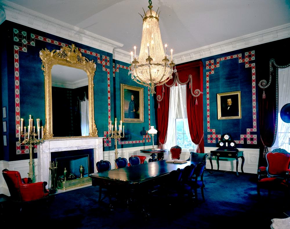 А вот в переговорной комнате, несмотря на то, что Жаклин Кеннеди восстановила ее в историческом виде начала XIX века, можно усмотреть и отголоски эклектики, и даже поп-арта.