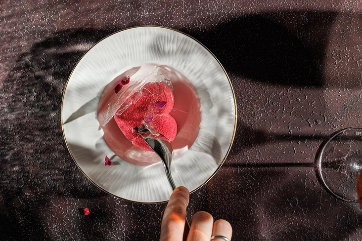 В День святого Валентина каждую пару в YURA угостят специальным десертом «Малина-роза-личи», который сочетает в себе несколько текстур. Сначала гостям предстоит разбить тонкий хрустящий слой, напоминающий лед (крустилан). За ним — нежный мусс розового сердца с начинкой из личи и малинового конфи на шоколадном бисквите. Также в программе вечера — живая музыка с 19:00 до 21:00 и панорамный вид на огни города.