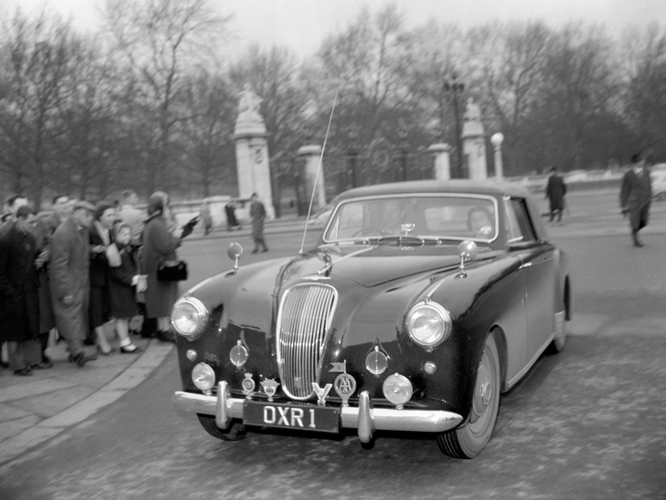 Автомобиль, на который Aston Martin получил свой первый королевский «ордер», — это 3-литровое купе Drophead, принадлежавшее принцу Филиппу. Говорят, супруг Ее Величества положил глаз на Астон в 1954 году. Авто могло похвастаться радиотелефоном, по которому Филипп разыгрывал своих детей, принца Чарльза и принцессу Анну, и большим косметическим зеркалом, чтобы королева могла проверить прическу и головной убор.
