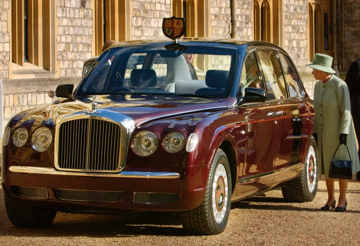 Bentley — наиболее очевидная замена классическому Rolls-Royce. Лимузин для официальных случаев был разработан на базе люксовой модели Bentley Arnage и был подарен Ее Величеству в 2002 году в ознаменование 50-летия ее восшествия на престол. Он оснащен модифицированным 6,75-литровым двигателем V8 мощностью 400 литров, а увеличенная колесная база обеспечивает монарху огромное количество места в салоне для ее фрейлин и прочих сопровождающих. Безопасность, конечно же, имеет первостепенное значение, так что эта машина бронирована, взрывобезопасна и оснащена по последнему слову техники.
