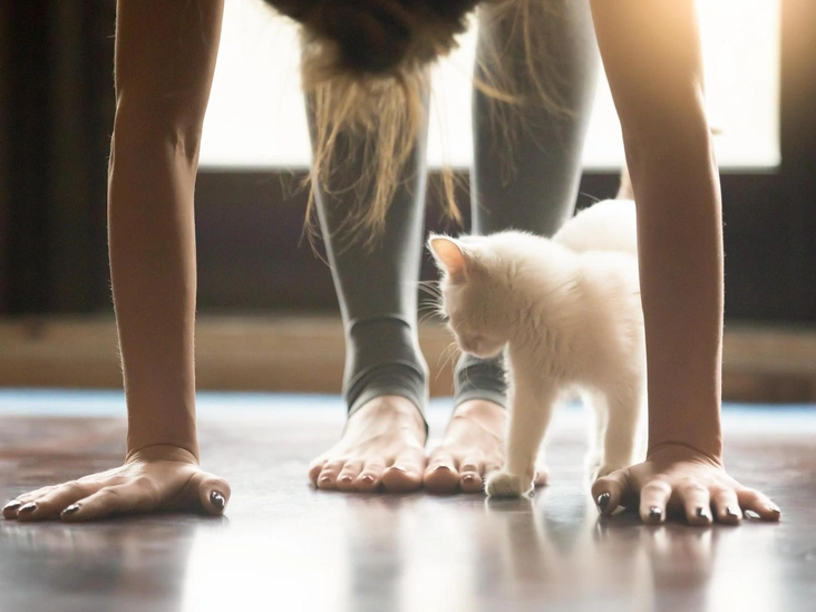 Сначала Мел советует проскользить с кровати прямо на пол. Оказавшись там, попробуйте сделать мягкие движения, которые помогут высвободить накопленное напряжение. Например, позы из йоги. Отлично для этого подойдет упражнение «кошка-корова». Либо вы можете просто потянуться так, как вам подсказывает интуиция. Главное — не торопитесь вставать. Дайте себе время адаптироваться и лучше прочувствовать все эмоции, которые вы испытываете в этот момент.