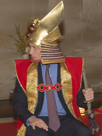 Конечно, британская церемониальная одежда идет Уильяму. Однако нельзя не замтеить, что герцог Кембриджский отлично смотрелся в костюме короля-самурая во время посещения съемочной площадки исторической драмы в студии общественного вещания NHK в Токио на третий день своего визита в Японию в 2015 году.