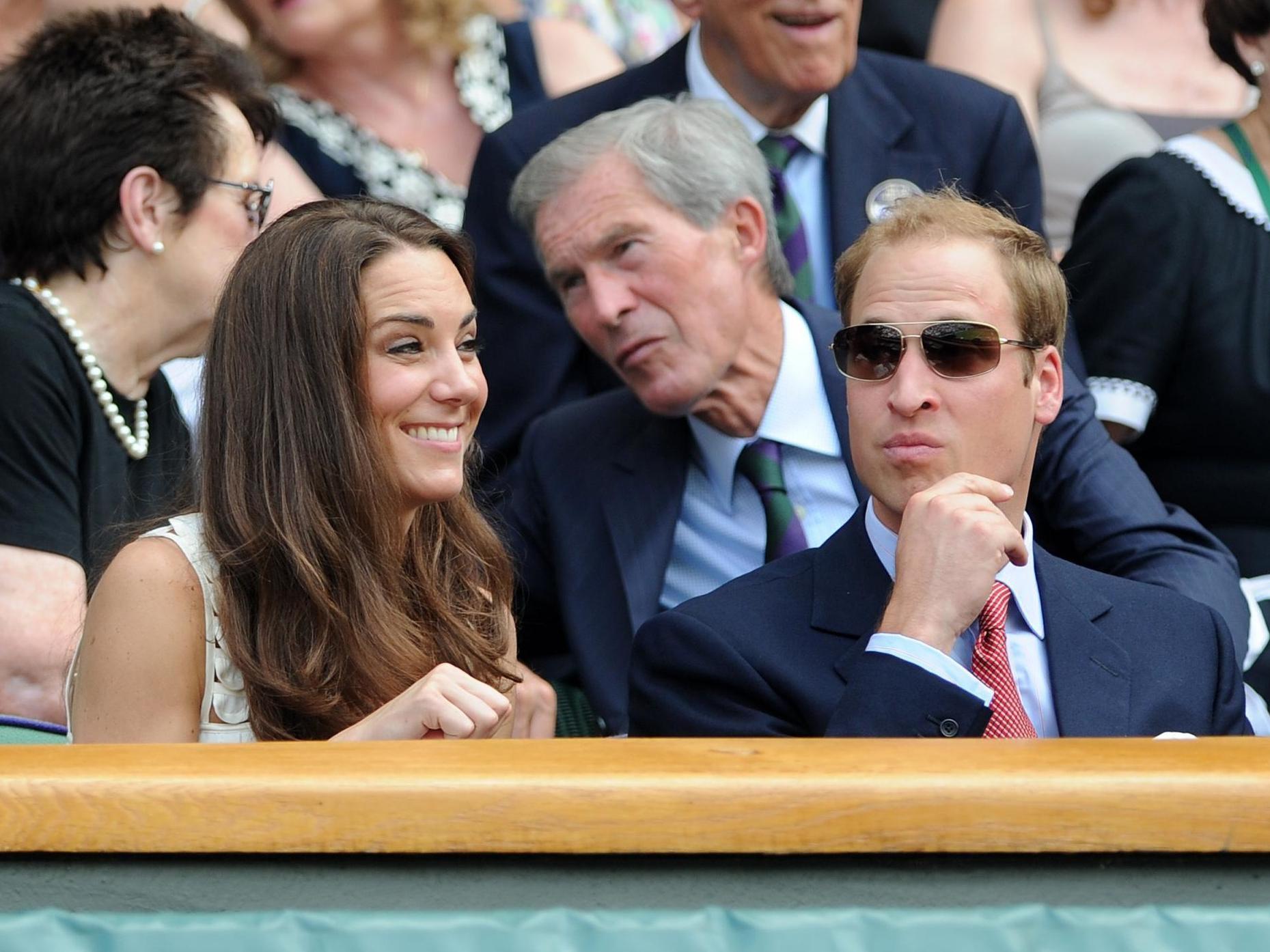 В амплуа неотразимого красавца будущий король выступал неоднократно. К примеру, тут герцог Кембриджский сидит в королевской ложе вместе с женой во время матча между Энди Мюрреем из Великобритании и Ришаром Гаске из Франции на центральном корте во Всеанглийском клубе лаун-тенниса и крокета в Уимблдоне. Идет седьмой день Уимблдонского чемпионата 2011 года. Недавно женившийся принц поправляет галстук и делает выражение лица прирожденного сердцееда (или ему так кажется).