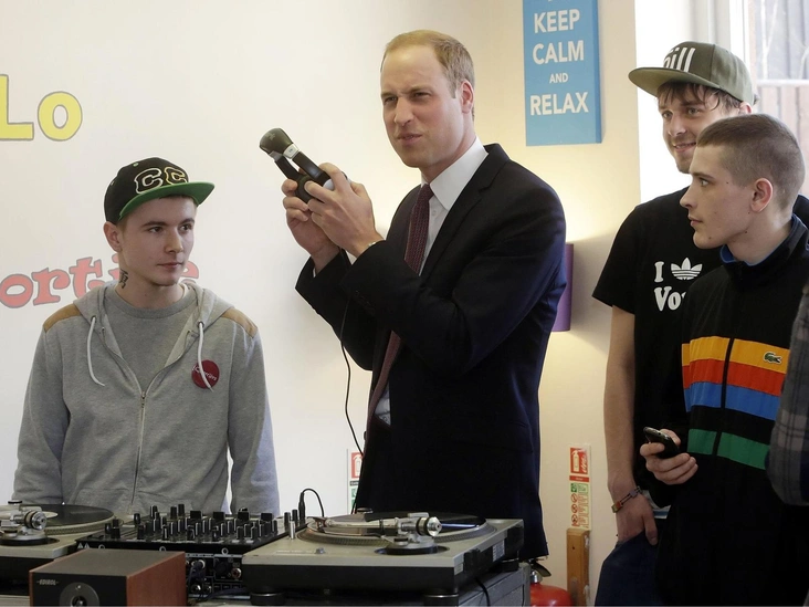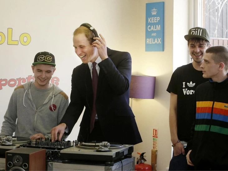 Уильям в роли диджея? Ну да. Уверены, что когда он взойдет на престол, эти снимки, сделанные во время визита на проект Quarriers Stopover в Глазго, Шотландия, будут вновь популярны. И это выглядит так, будто Уильям уже стремился молодиться. Визит, конечно же, прошел в сопровождении папы.