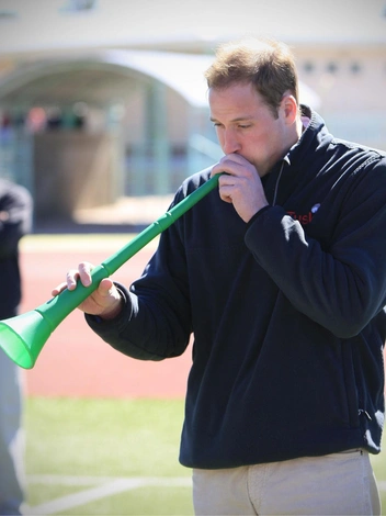 Впрочем, далеко не все музыкальные мероприятия проходят одинаково удачно для Его Высочества. Здесь запечатлена реакция принца после того, как местный мальчик использовал вувузелу во время посещения проекта «Коучинг для сохранения природы» в Мауне, Ботсвана.