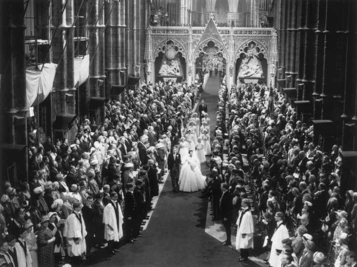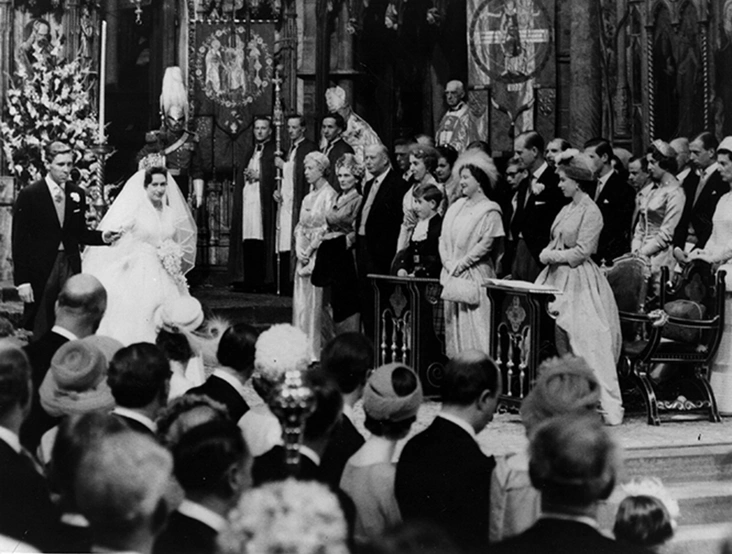 День 6 мая 1960 года знаменателен тем, что впервые королевская свадьба такого уровня транслировалась в прямом эфире. Не выходя из дома ее посмотрели 20 миллионов британцев, и 300 млн пар любопытных глаз по всему миру. Показано было все: и то, как счастливая невеста ехала в карете в сопровождении принца Филиппа Эдинбугского (муж Елизаветы II заменил принцессе Маргарет отца на церемонии венчания) в Вестминстерское аббатство. Как шла к алтарю между рядов с 2 тысячами почетных гостей церемонии. Как Маргарет буквально выбежала вместе с новоиспеченным мужем из ворот церкви. На впечатлительную публику все это произвело неизгладимое впечатление. Невесты желали себе платья «как у принцессы Маргарет», а молодые мамы еще долго называли своих дочерей «Маргарет Роуз» (Роуз — второе имя принцессы).