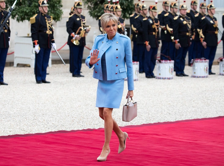 Хозяйка Елисейского дворца заявила о себе громко и безапелляционно (несмотря на то, что ее чрезмерную любовь к узким джинсам отметили еще во время избирательной кампании Эммануэля). Между тем, ее настоящим fashion-дебютом стал небесно-голубой костюм от Louis Vuitton, в котором новоиспеченная первая леди предстала на инаугурации своего супруга. Именно тогда женщина задала новые и весьма революционные (по крайней мере, для 60-летних дам) стандарты дипломатического стиля: длина мини, жакеты и блейзеры прямого покроя, яркие цвета базовых вещей и нейтральные оттенки — для аксессуаров.