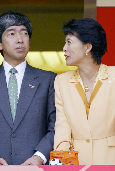 В конце осени 2002 года принц Нарихито Такамадо внезапно скончался от сердечной недостаточности, в результате чего его супруга «унаследовала» председательство во многих организациях – и в Футбольной ассоциации, в том числе. До сих пор именно она представляет императорскую семью на многих спортивных мероприятиях в Японии и за рубежом, награждает победителей соревнований, выступает на саммитах и конференциях и даже нередко совершает заграничные поездки соло.