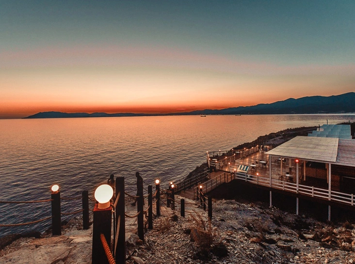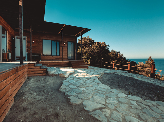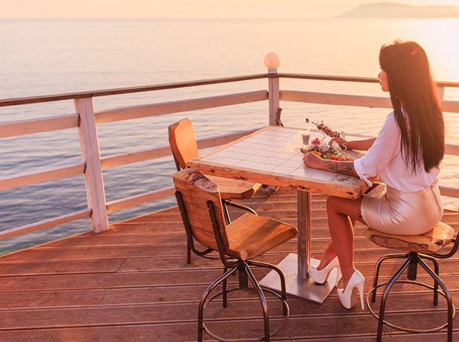 В распоряжении окружающих красивый дикий пляж, зоны с мангалом, детский городок и гриль-бар на возвышении над морем. В баре есть бесплатный Wi-Fi, так что загружать снимки в Instagram (запрещенная в России экстремистская организация) и потом собирать лайки можно в режиме реального времени. Для тех, кто приехал сюда на машине, есть охраняемая парковка.