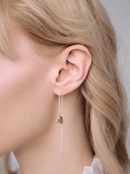 Серьги-протяжки смотрятся невесомо и изящно благодаря тонким линиям. Во всех сердцах-валентинках коллекции «Paper Hearts» спрятано послание — гравировка «Open your heart». Оно скрыто от посторонних, но напоминает: важно открывать своё сердце.
