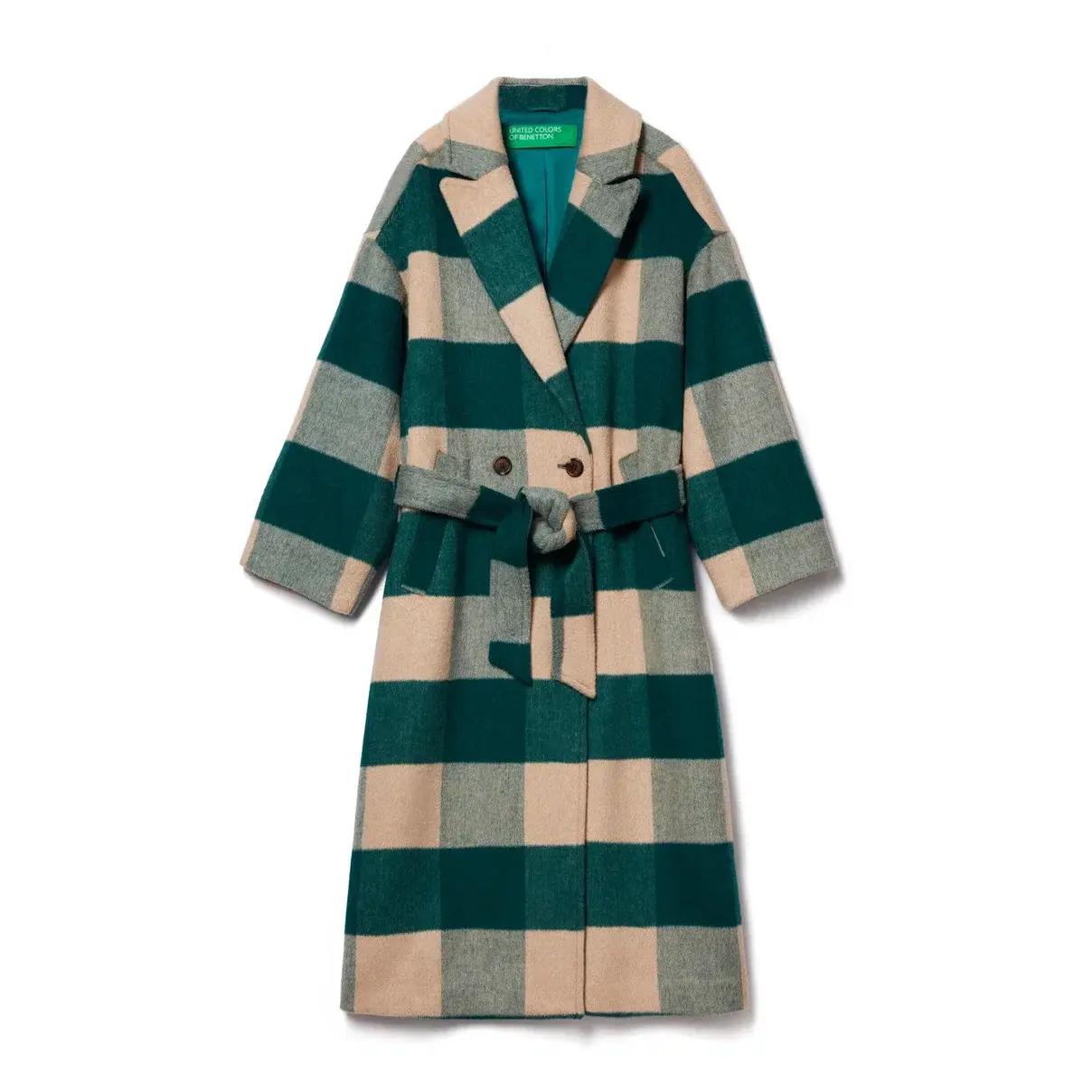 Пальто Benetton — греемся в модной на 2025 год клетке