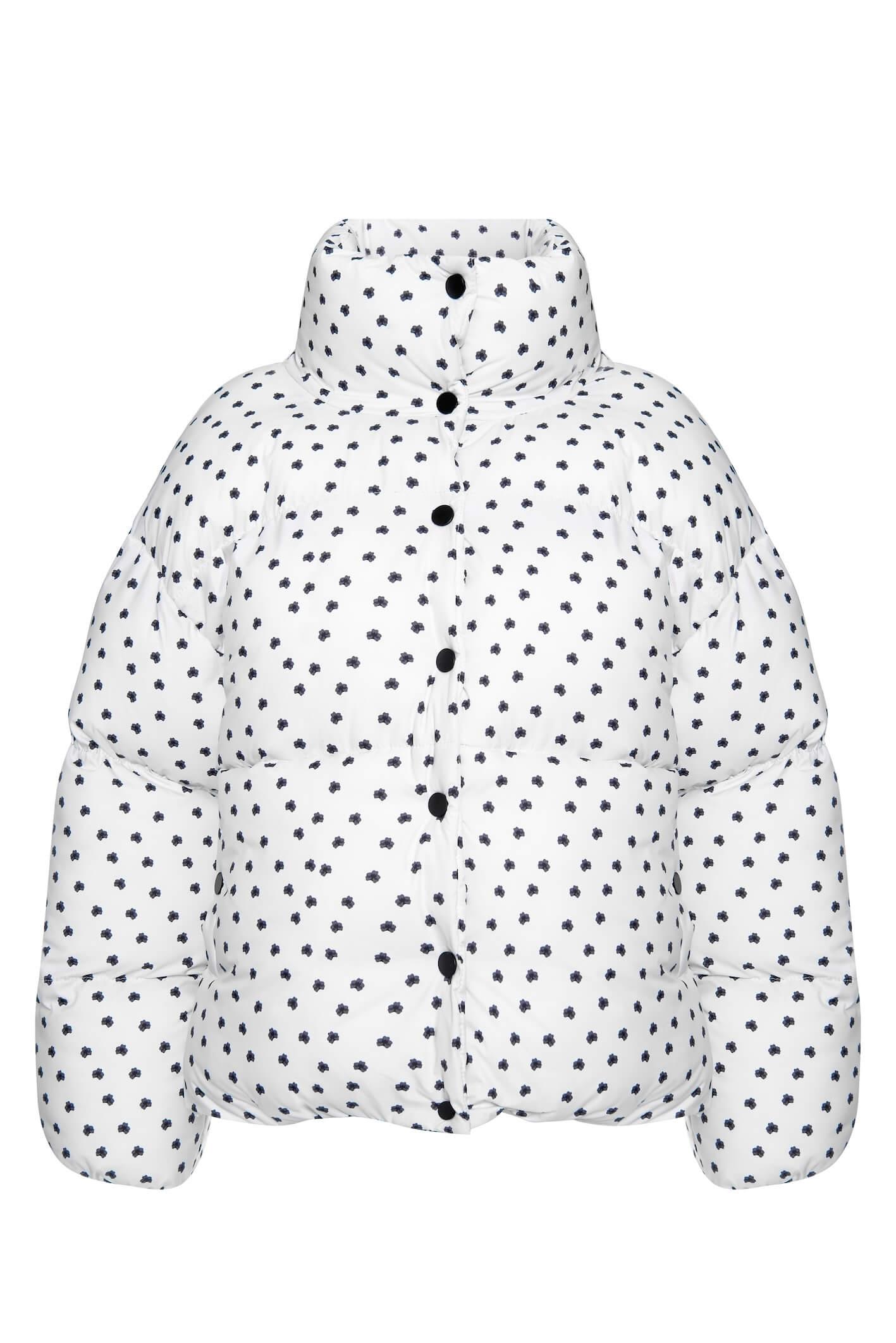 Пуховик-трансформер Rejo с наполнителем из экологичного гипоаллергенного синтепуха. В нем будет комфортно при температуре 10-12°С. За счет эластичных скрытых кулисок по талии и по низу вы можете носить пуховик прямым, зауженным к низу или зауженным в талии. Свободный крой, длина до середины бедра, резинка по низу рукавов, высокая горловина-стойка. Пуховик застегивается на молнию и планку с кнопками, карманы с листочками на кнопках по бокам.