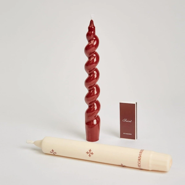 В наборе 2 свечи и фирменные спички. Бордовая свеча изящно «плачет» и застывает в обрамлении капелек, а бежевая — долго горит и не «плачет». Для любителей красивой эстетики у себя дома.