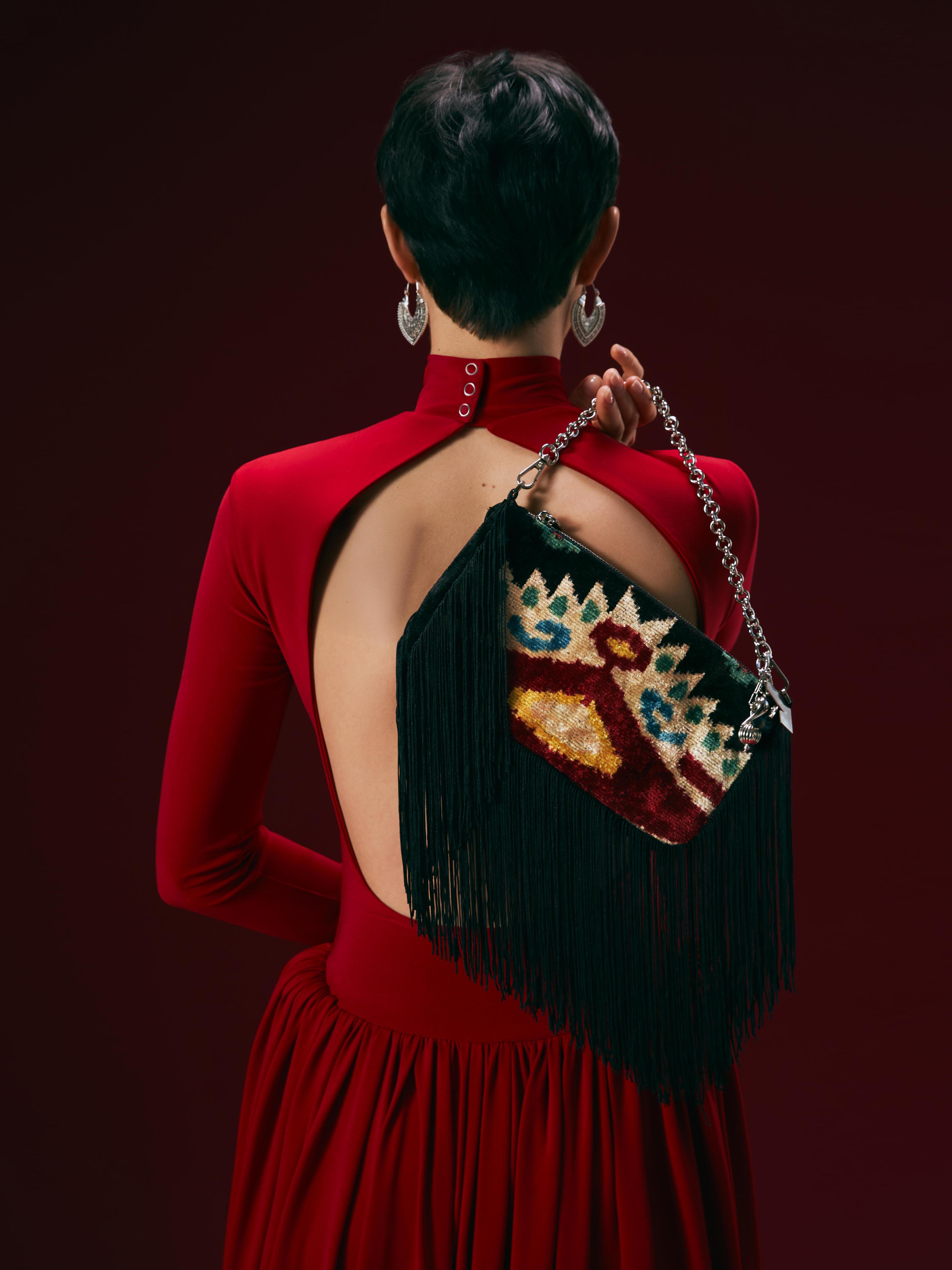 Идеальный вариант для театральных выходов. Идея создания аксессуара была навеяна премьерой мюзикла «Последняя сказка». Трендовое и стильное переосмысление восточных мотивов точно сделает вас особенно роскошной гостьей любого мероприятия.