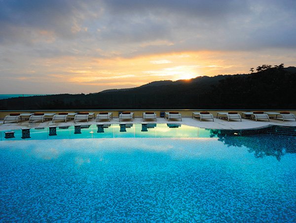 Около термального курорта Petriolo Spa Resort – густые леса тосканской Мареммы, в которых живут фазаны, кабаны, лисы, зайцы, олени, дикобразы. Термальная вода из их горячего источника богата сероводородом, солями и минералами, что очень полезно для дыхательной и нервной системы, кожи, суставов, костей и мышц. Во многих спа-процедурах в Petriolo используются уникальные рецепты когда-то обитавших в этих краях этрусков, открывших свойства местных растений, поэтому в массажах помимо термальной воды и грязей также используют травы, масла и специи. Например, оливковое масло с близлежащих плантаций, обожаемый итальянцами розмарин (он дает мощный омолаживающий эффект), ромашку, глину, лопух, овсяную муку (кладезь витаминов А, В, D, фосфора, магния и аминокислот), мед акации, цельную морскую соль с побережья Тирренского моря. Petriolo – это не просто термальный курорт, а многопрофильный медико-терапевтический центр. К его руководителю, доктору Луиджи Брокки (он, кстати, написал книгу о целительных свойствах тосканских трав), съезжаются на консультацию со всей Европы. Здесь предлагают множество комплексных программ – по омоложению (для начала вам предложат пройти диагностику окислительного стресса и скорости старения кожи) или многопрофильному лечению: остеопатия, ангиология, ревматология, физиотерапия, фитотерапия, традиционная китайская медицина, снятие стресса, диетология. А если вы просто желаете отдыхать, плавать в термальной воде в бассейнах разных температур со всеми возможными гидромассажами и каскадами, загорать, любоваться зелеными холмами, есть при этом идеальную тосканскую еду и пить лучшие тосканские вина, то в Petriolo деликатно учтут любое ваше пожелание.