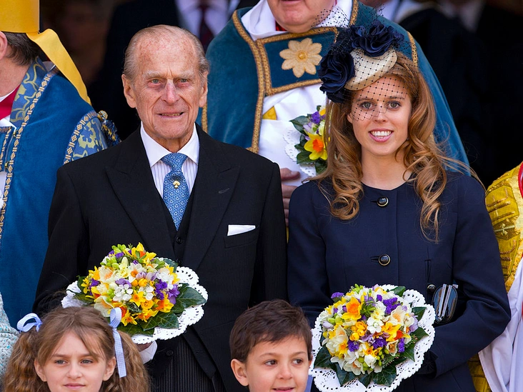 Принц Филипп и принцесса Беатрис в Йорке после посещения церковной службы в честь Великого четверга — особого дня христианской Страстной недели.