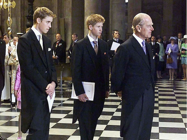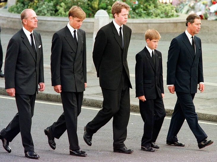 Принц Филипп с внуками Гарри и Уильямом (а также с принцем Чарльзом и Чарльзом Спенсером) на похоронах принцессы Дианы. Инсайдеры утверждают, что Эдинбургский достойно поддержал внуков после кончины их матери. Он сам столкнулся с довольно ранней потерей сестры, Сесилии Греческой, и понимал, как непросто было юным принцам.