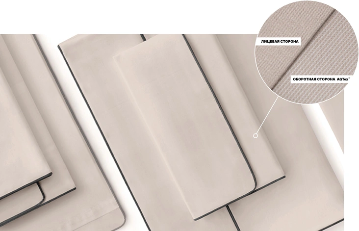 Наличие серебряных нитей в тканях, изготовленных по технологии AGTex®, легко определить визуально невооруженным глазом на оборотной стороне изделий SOFT SILVER — это является доказательством подлинности.