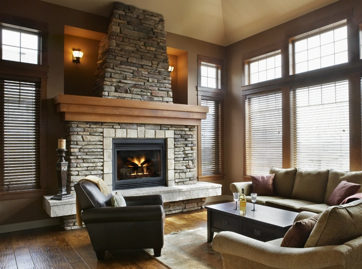 В том случае, если получилось согласовать монтаж дымохода, то уделите особое внимание его конструкции: от этого зависит сила тяги. В квартире лучше устанавливать закрытые камины с жаропрочным стеклом. Каменные и обрамленные деревом камины хорошо подходят для деревенского стиля и стиля горных альпийских шале. Если хотите внести в дизайн квартиры рустикальную нотку — это вариант для вас.