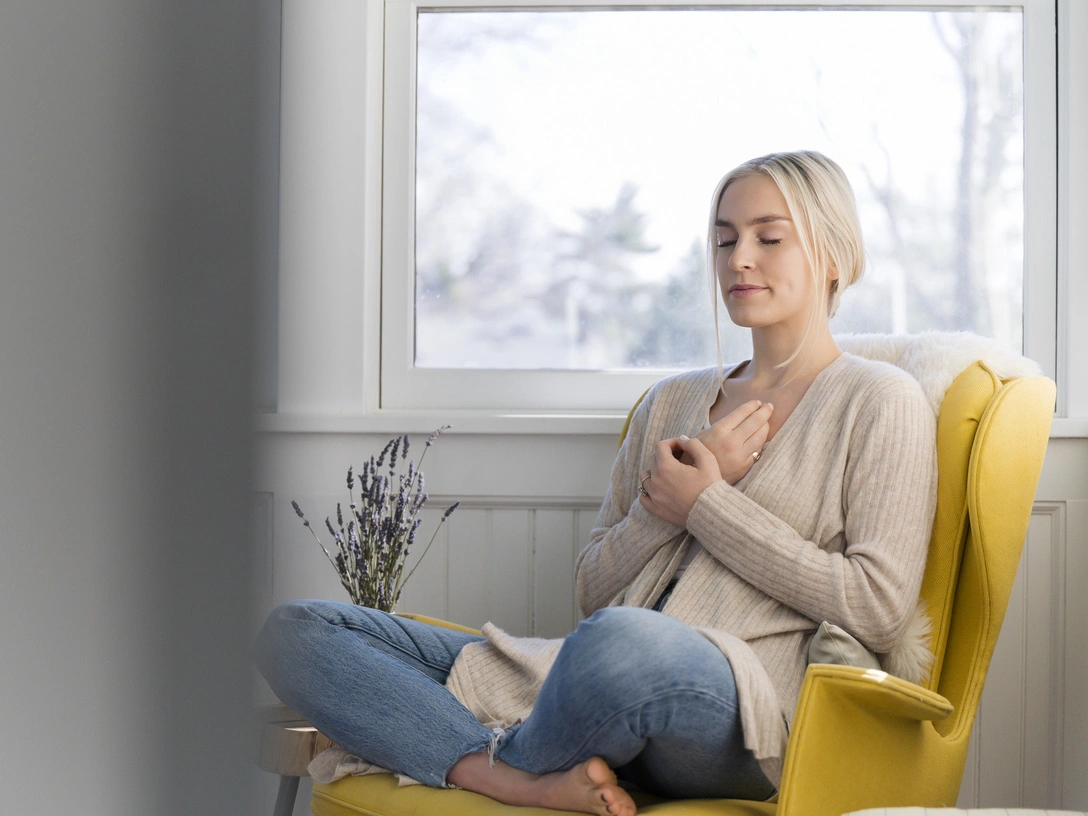 Найдите тихое и удобное место, где чувствуете себя в безопасности и где вас не будут беспокоить. Сядьте удобно, медленно закройте глаза и сделайте 2–3 медленных глубоких вдоха.